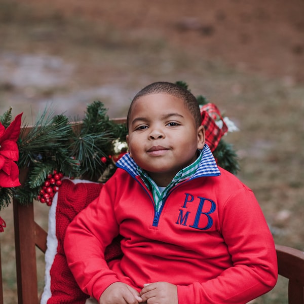 Unisex Childs Monogrammed Seersucker Quarter Zip Pullover: Toddler