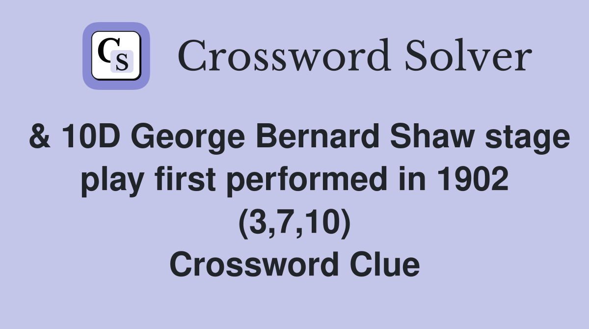 10D George Bernard Shaw stage play first performed in 1902 (3 7 10