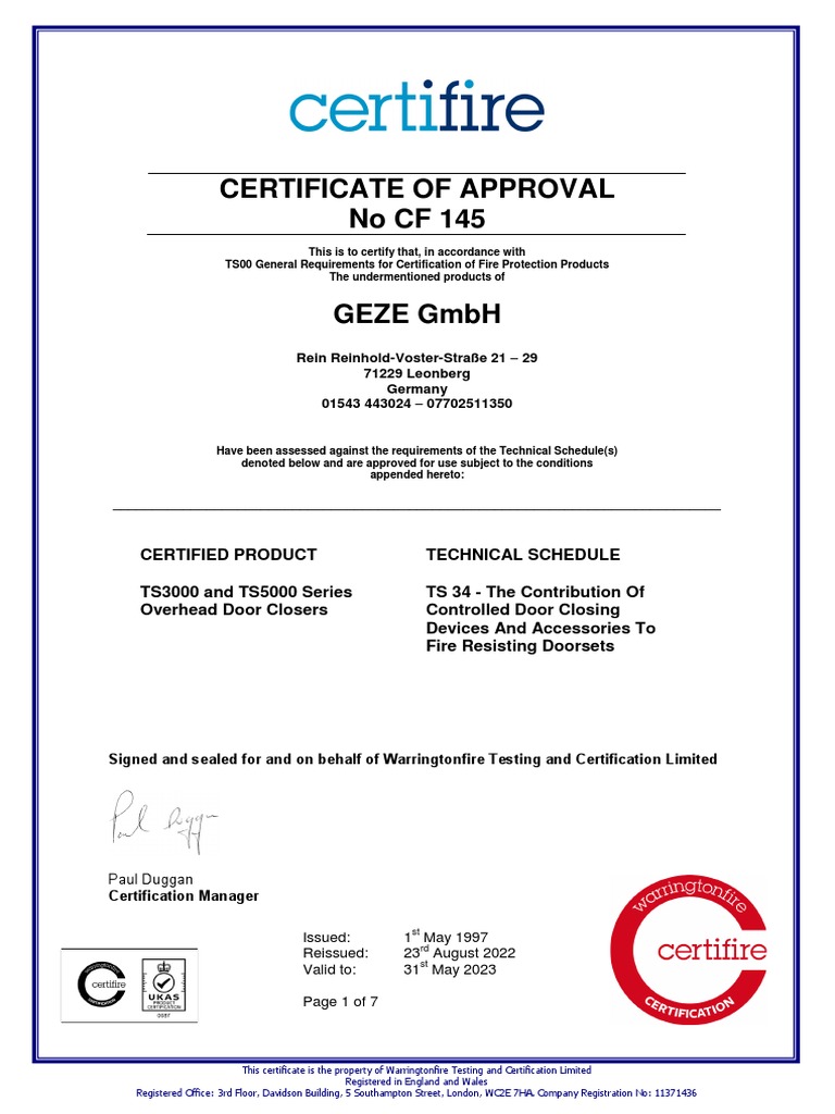 GEZE Zertifikat EN 759072 PDF Door Building Engineering