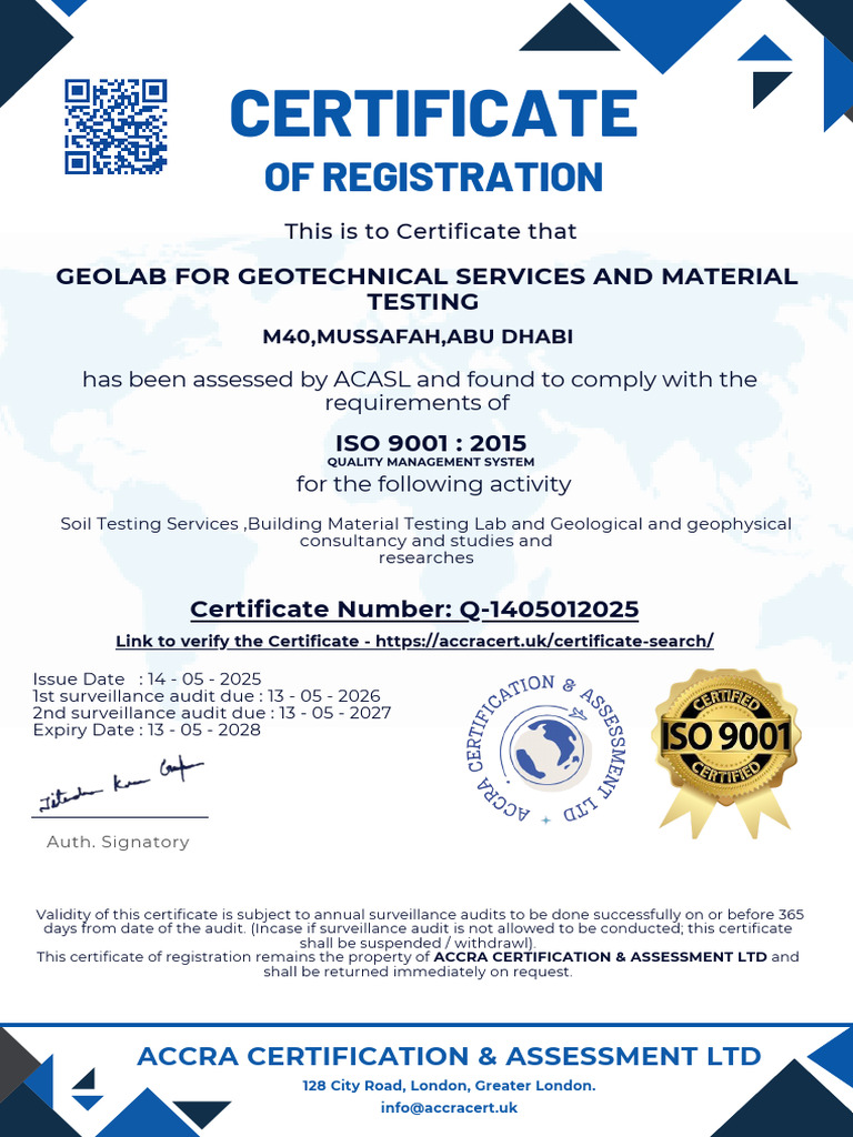 Final Certificates GEOLAB For Geotechnical Services and Material