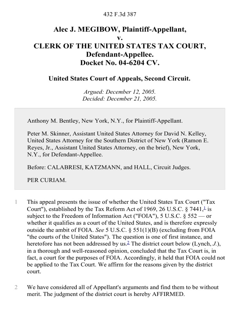 Alec J Megibow v Clerk of The United States Tax Court Docket No 04