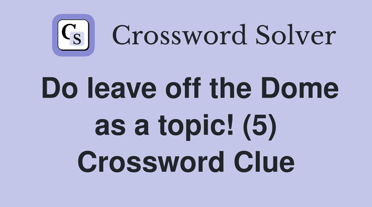 Do leave off the Dome as a topic (5) Crossword Clue Answers