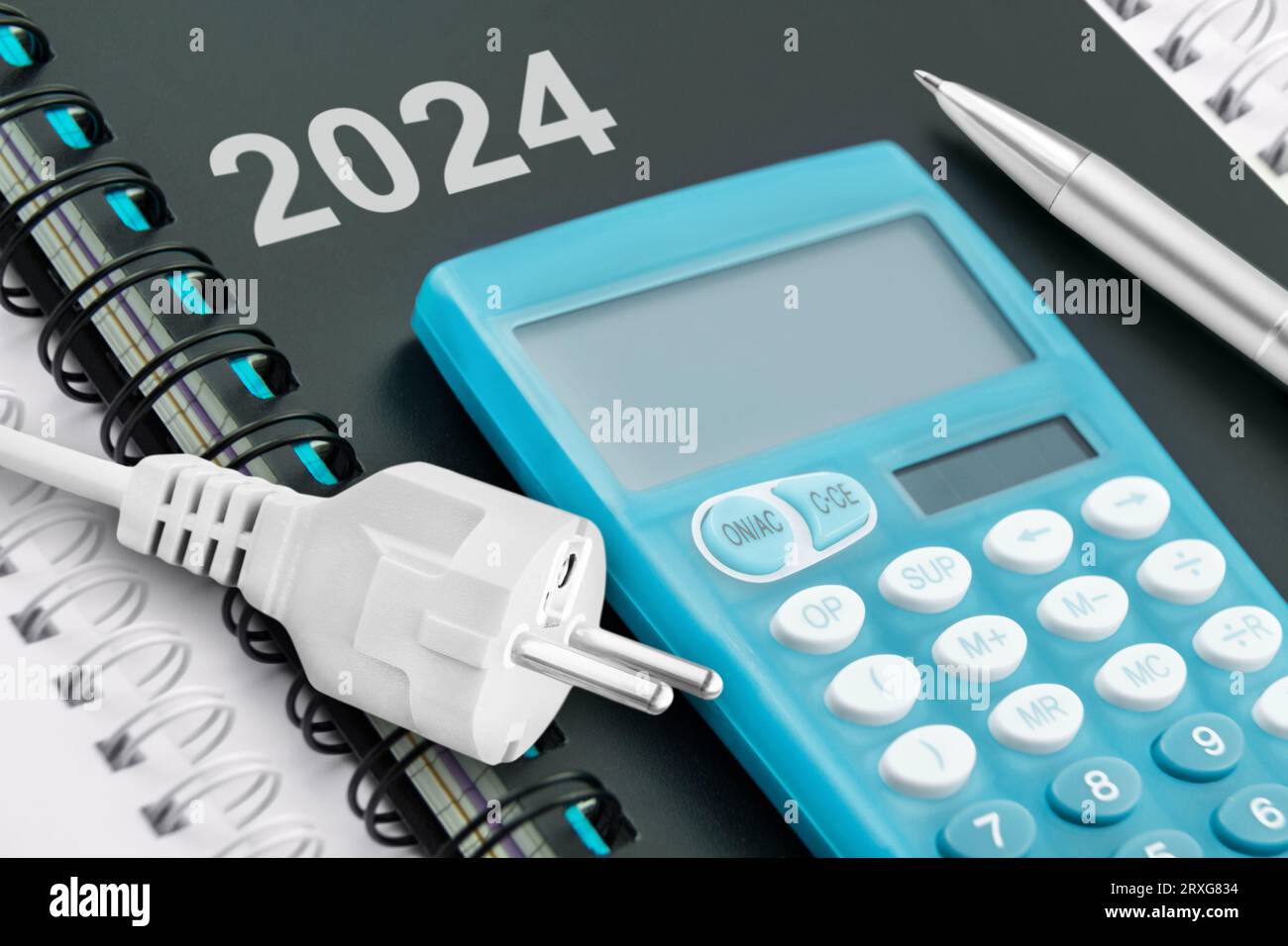 German calender 2024 power cable and blue calculator Stock Photo Alamy
