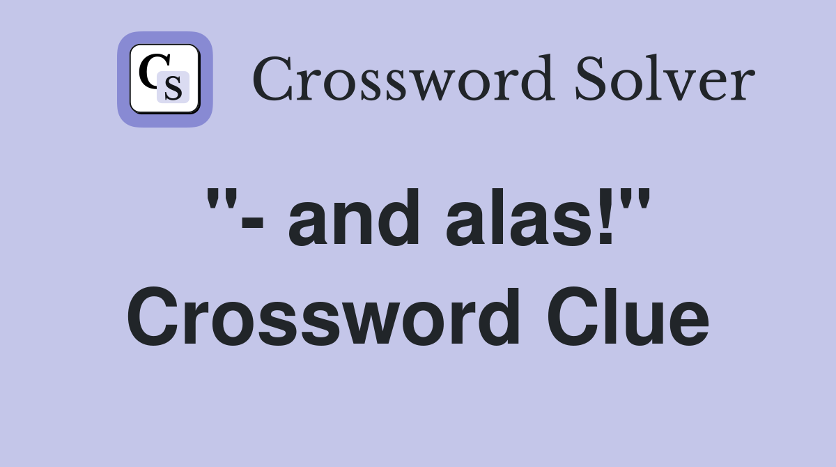 quot and alas quot Crossword Clue Answers Crossword Solver