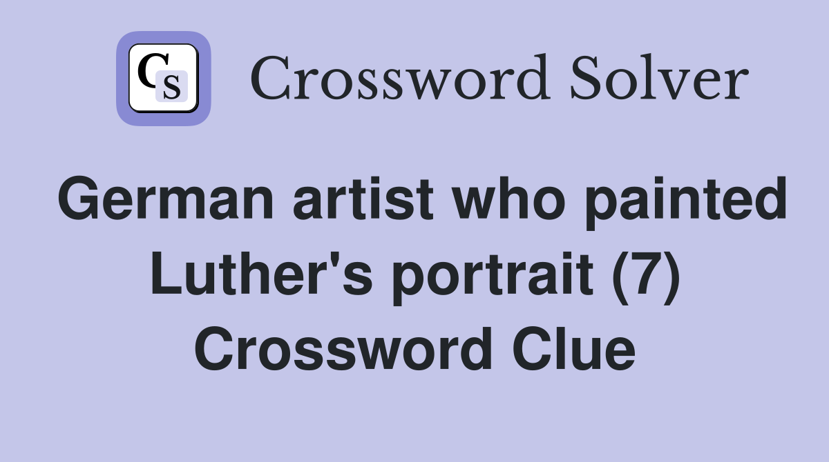 German artist who painted Luther #39 s portrait (7) Crossword Clue