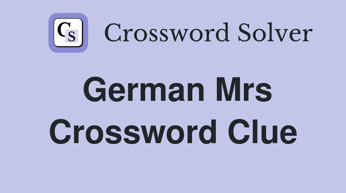 Here are some of the images for German Mrs Crossword Clue that we found in our website database.
