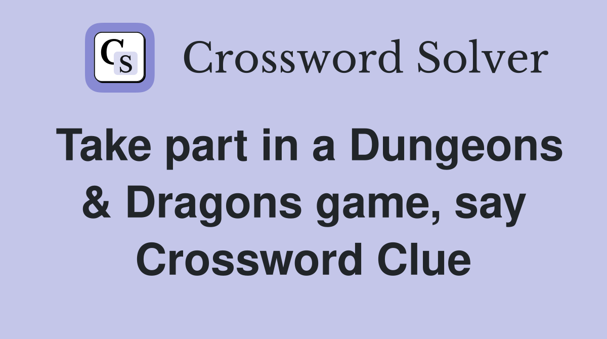 Take part in a Dungeons Dragons game say Crossword Clue Answers