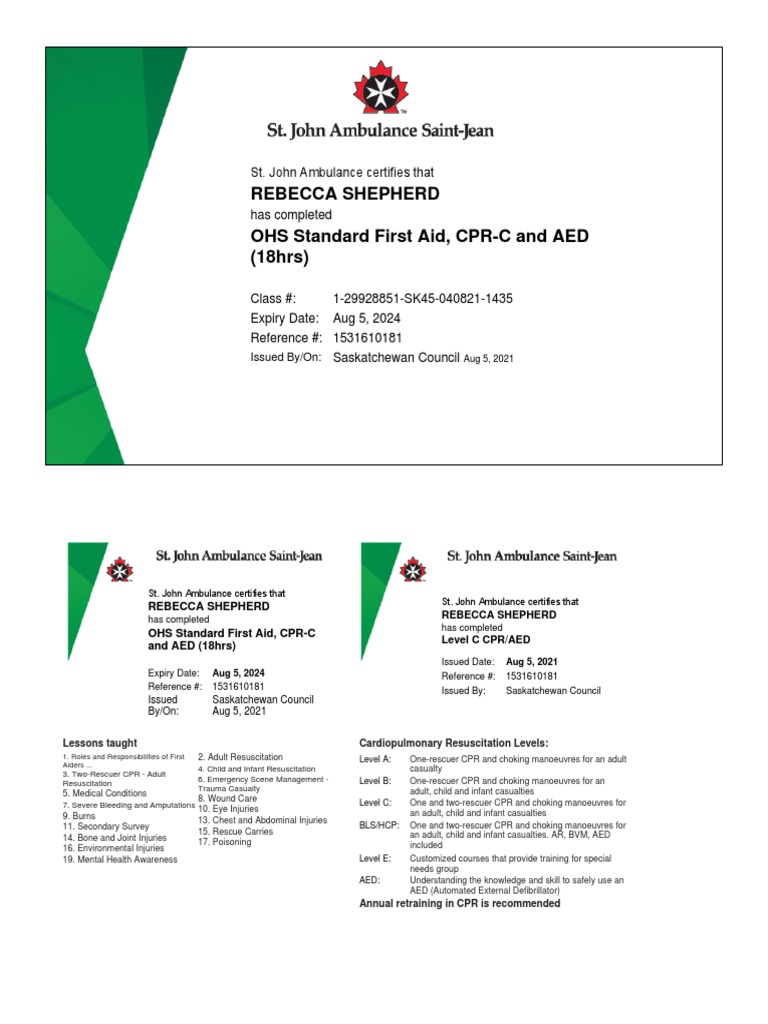 Shepherd Certificate PDF Cardiopulmonary Resuscitation First Aid