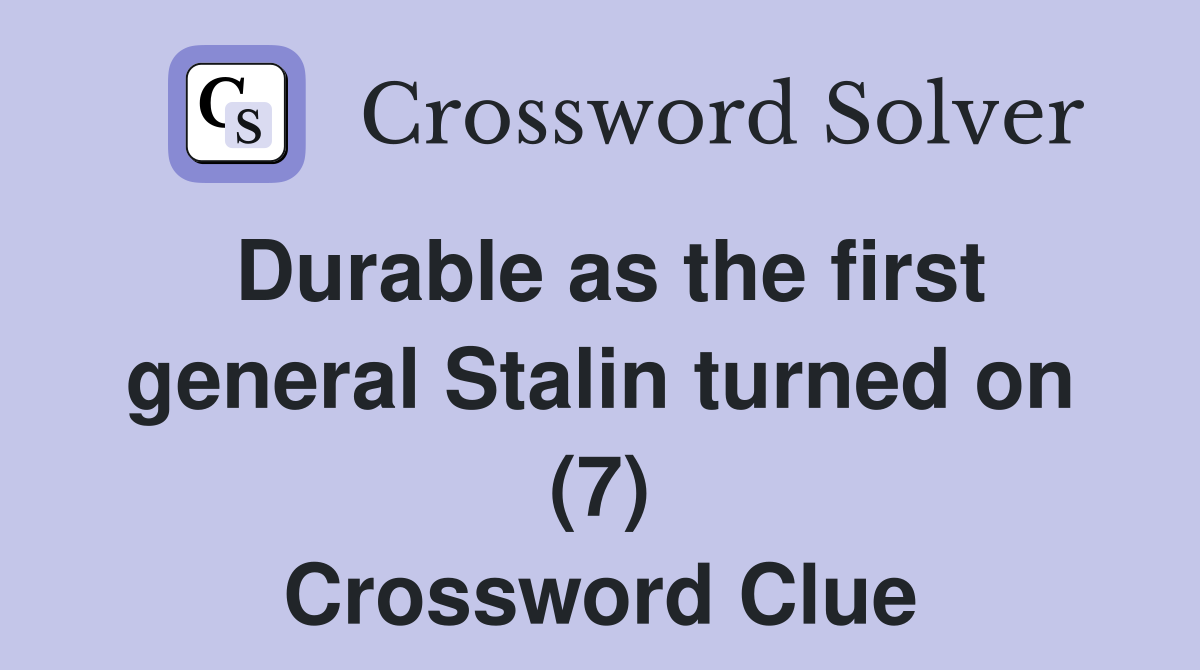 Durable as the first general Stalin turned on (7) Crossword Clue
