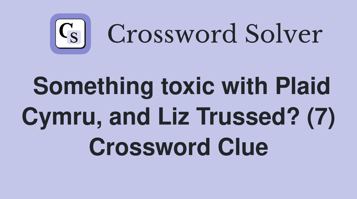 Something toxic with Plaid Cymru and Liz Trussed? (7) Crossword Clue