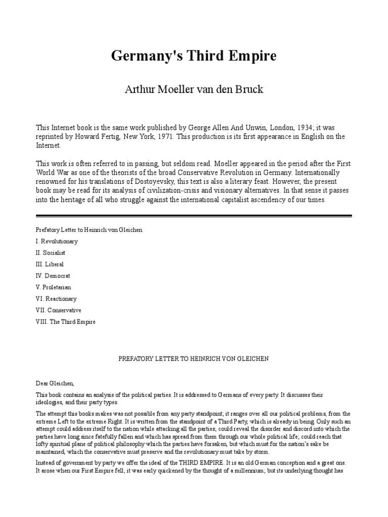 Arthur Moeller Van Den Bruck Germanys Third Empire PDF Otto Von