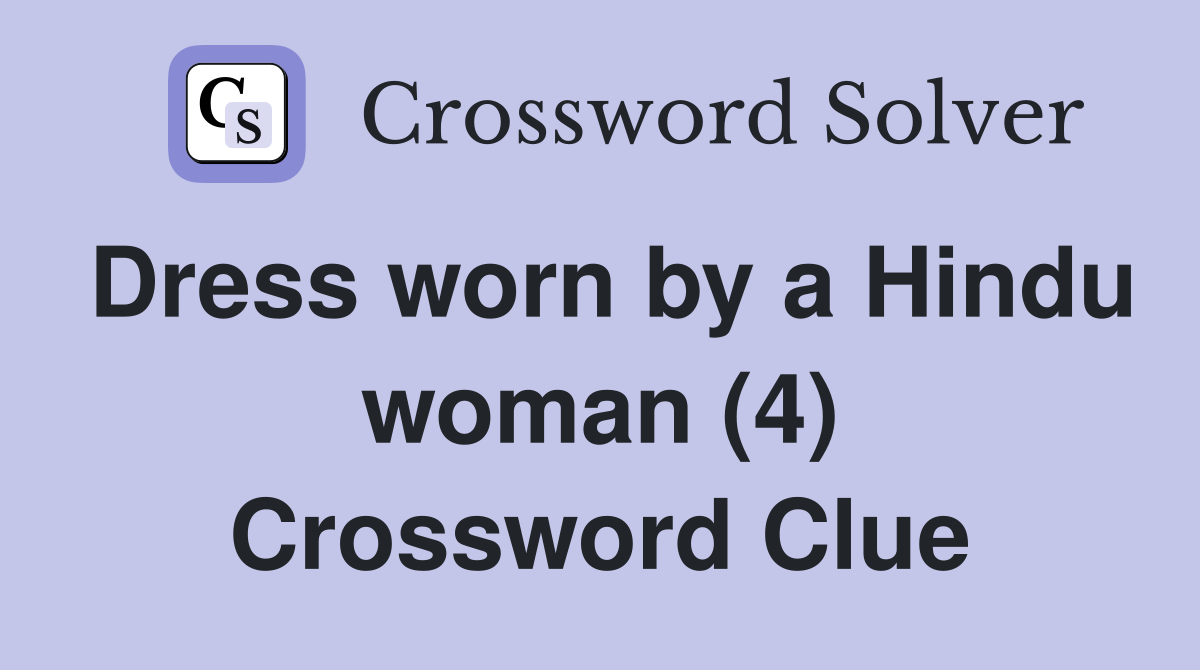 Dress worn by a Hindu woman (4) Crossword Clue Answers Crossword Solver