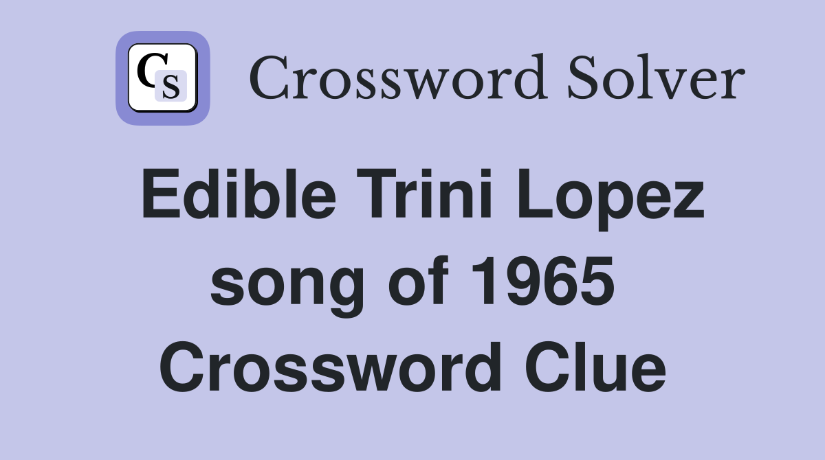 Edible Trini Lopez song of 1965 Crossword Clue Answers Crossword Solver