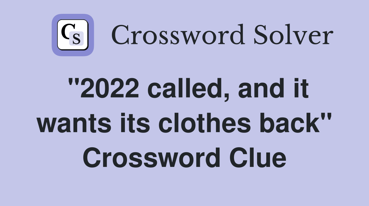 quot 2022 called and it wants its clothes back quot Crossword Clue Answers