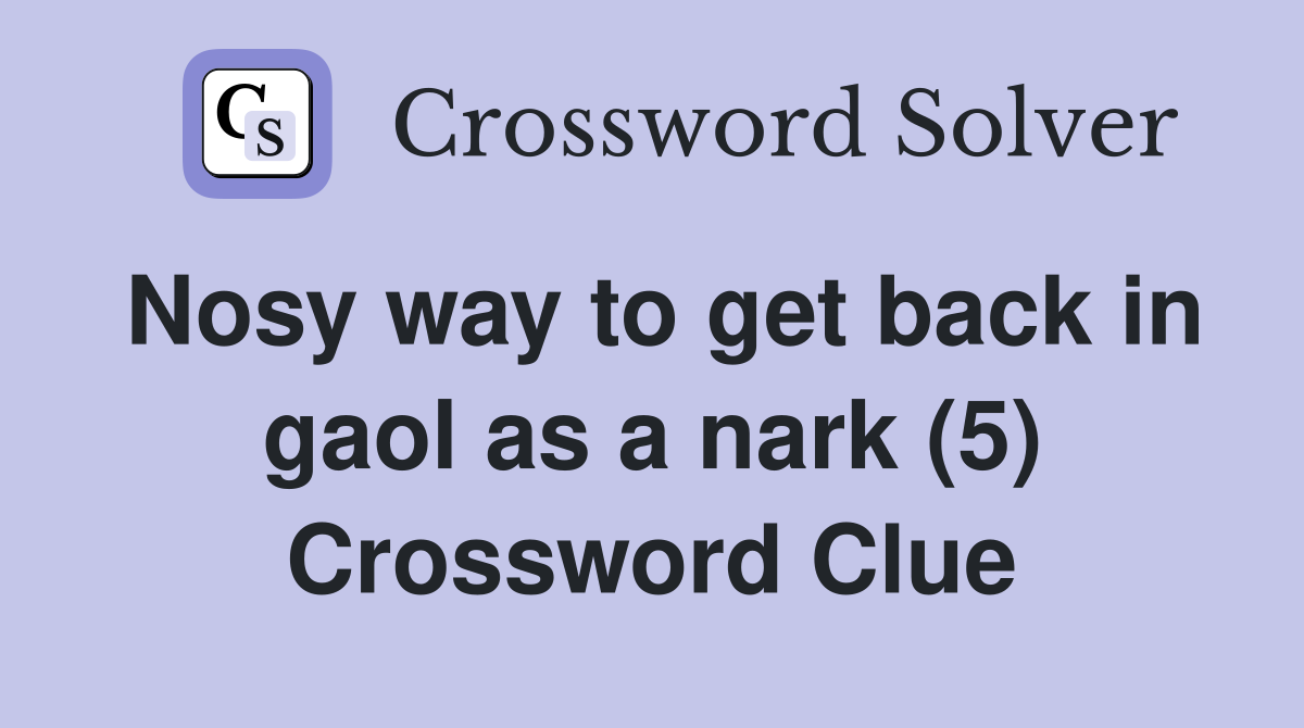 Nosy way to get back in gaol as a nark (5) Crossword Clue Answers