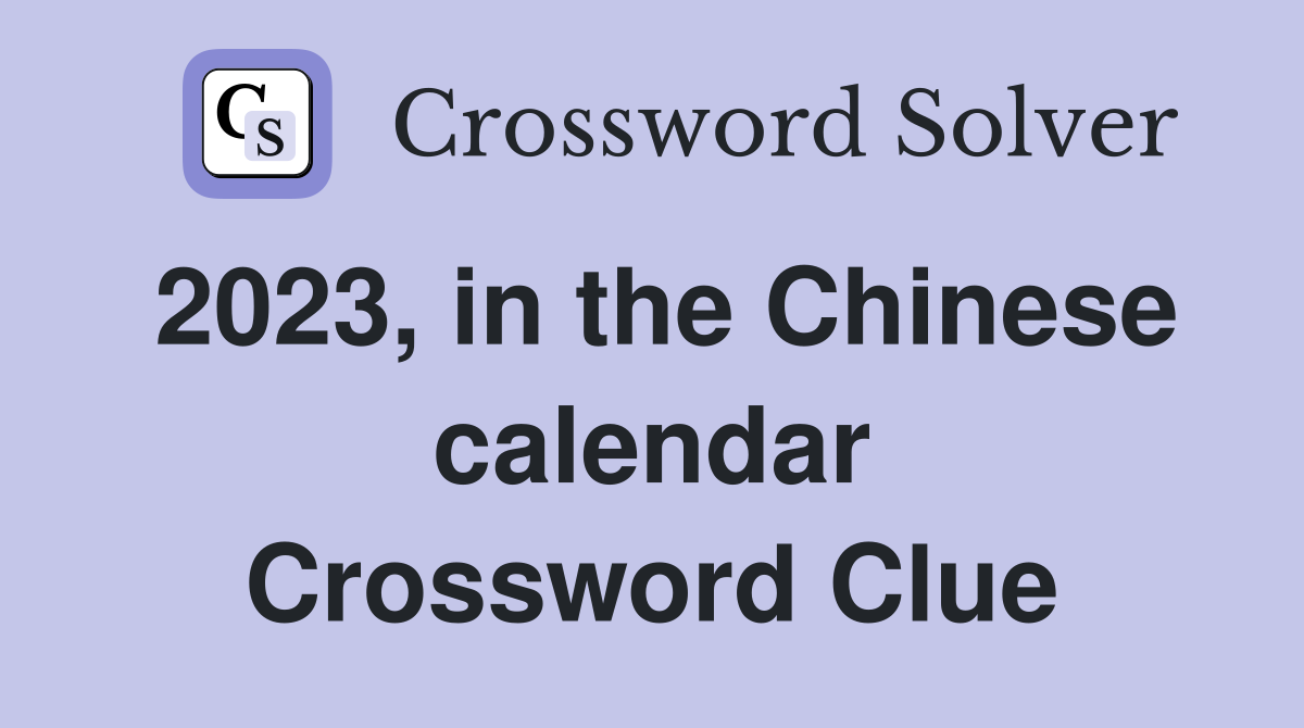 2023 in the Chinese calendar Crossword Clue Answers Crossword Solver