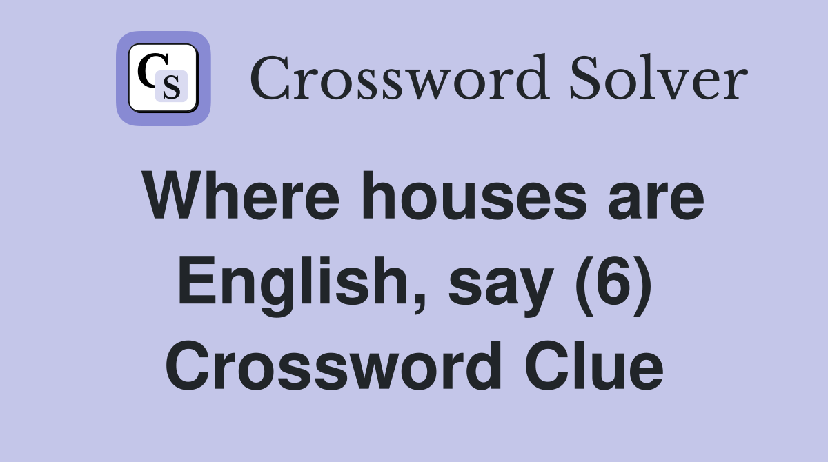 Where houses are English say (6) Crossword Clue Answers Crossword
