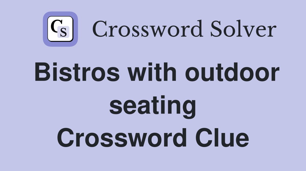Bistros with outdoor seating Crossword Clue Answers Crossword Solver