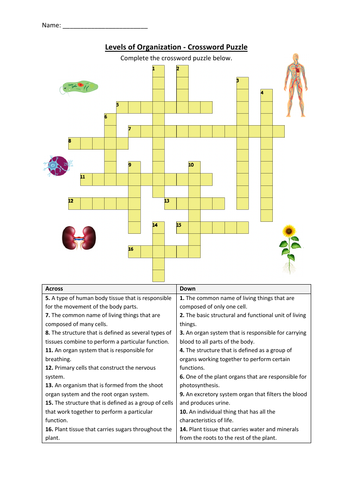 Levels of Organization Crossword Puzzle Worksheet Activity (Printable