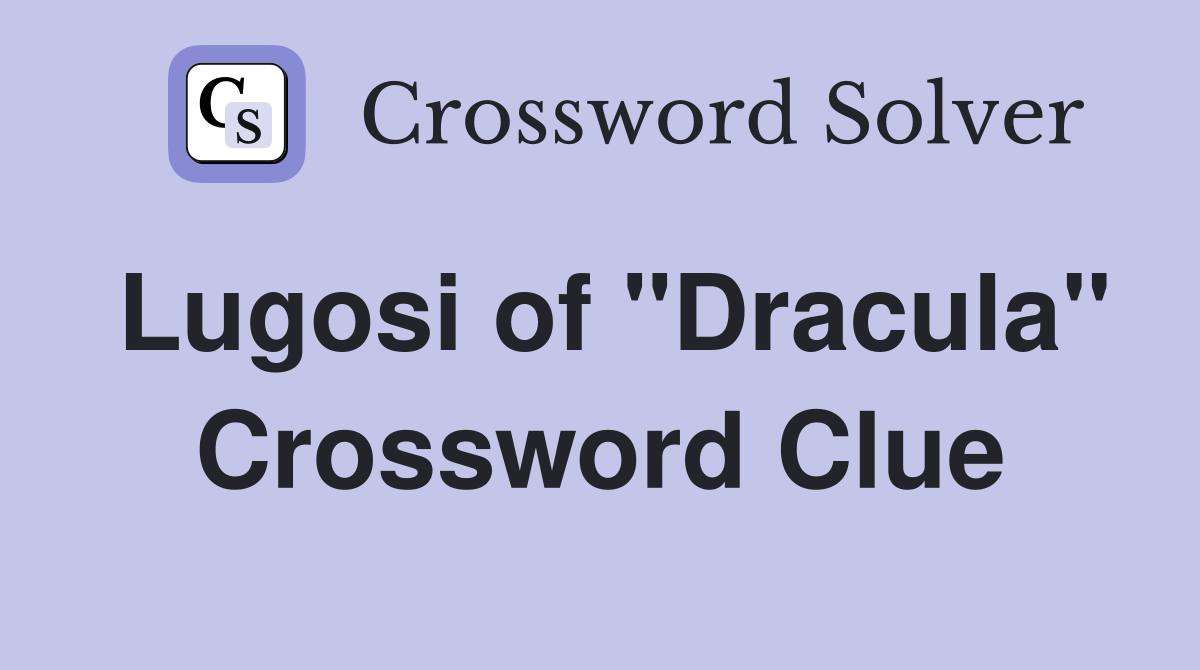 Lugosi of quot Dracula quot Crossword Clue Answers Crossword Solver