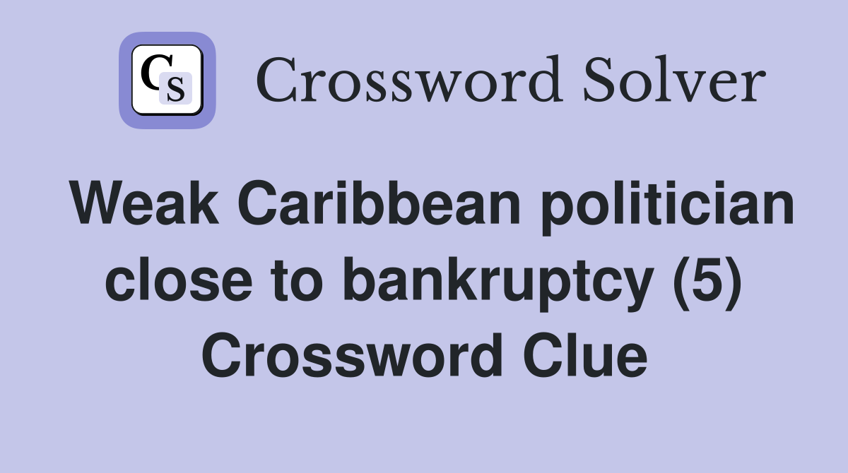 Weak Caribbean politician close to bankruptcy (5) Crossword Clue