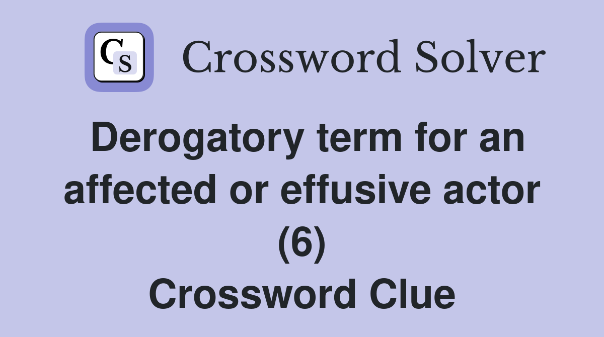 Derogatory term for an affected or effusive actor (6) Crossword Clue