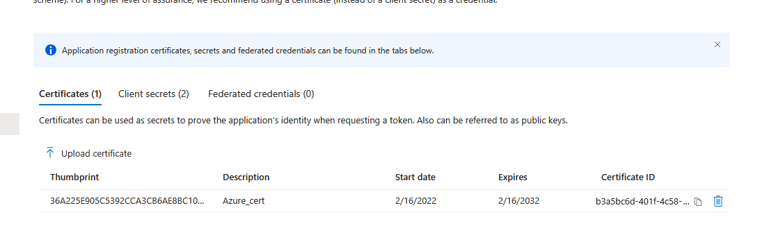 Cannot upload public certificate with the same thumbprint error with
