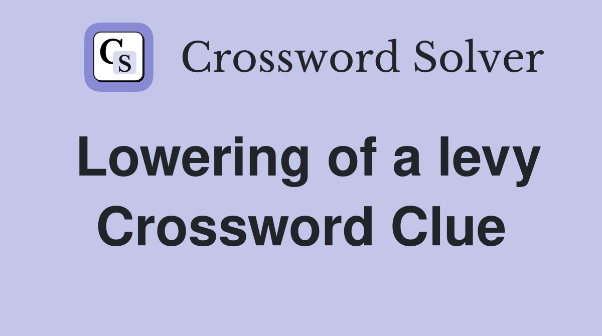 Lowering of a levy Crossword Clue Answers Crossword Solver