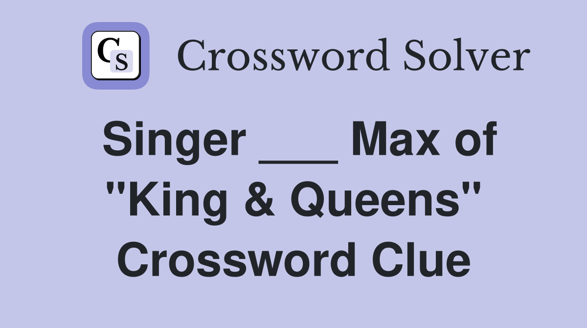Singer Max of quot King Queens quot Crossword Clue Answers Crossword