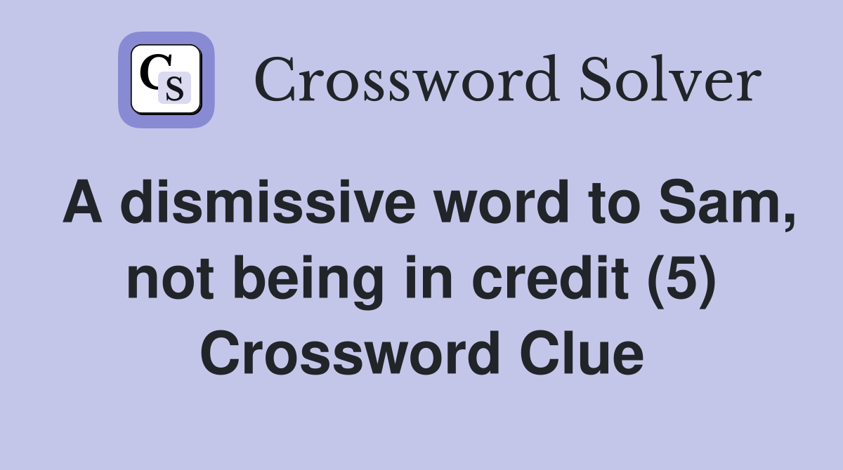 A dismissive word to Sam not being in credit (5) Crossword Clue