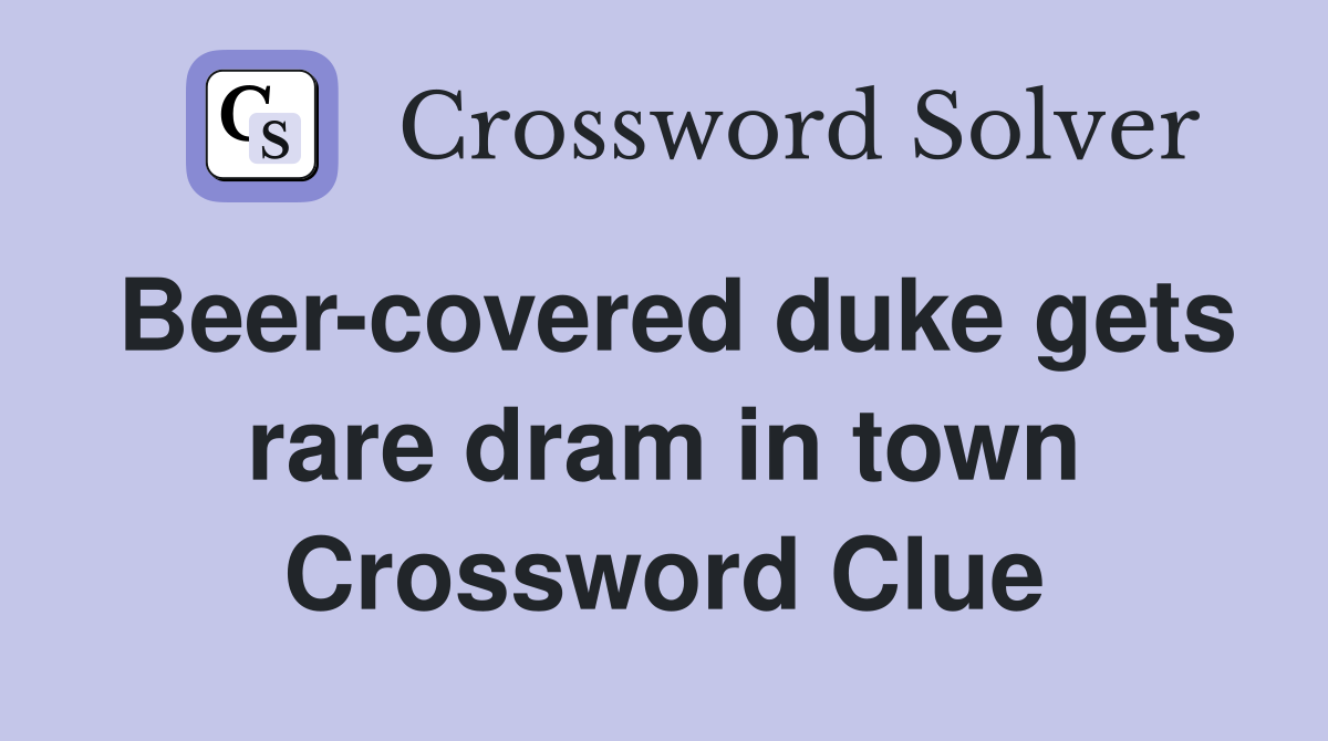 Beer covered duke gets rare dram in town Crossword Clue Answers