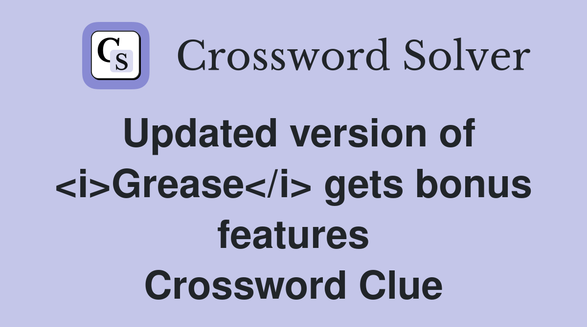 Updated version of Grease gets bonus features Crossword Clue Answers