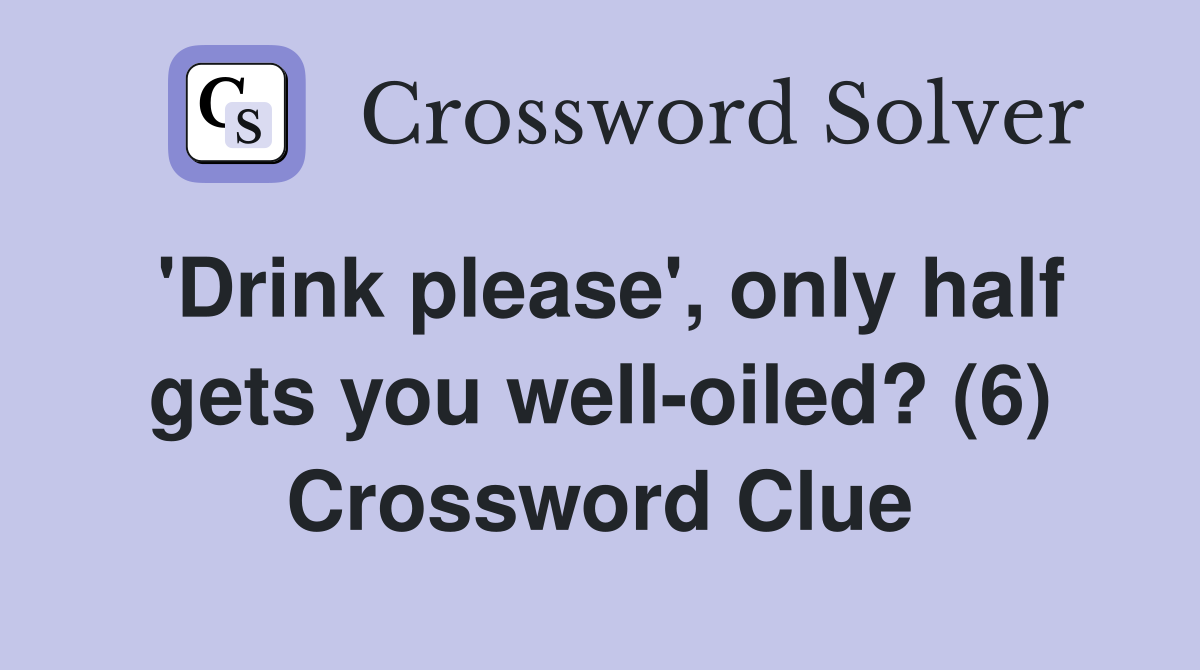 #39 Drink please #39 only half gets you well oiled? (6) Crossword Clue