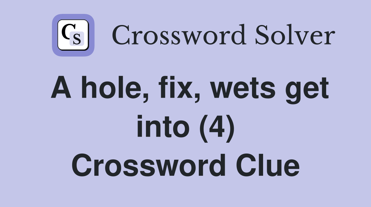 A hole fix wets get into (4) Crossword Clue Answers Crossword Solver