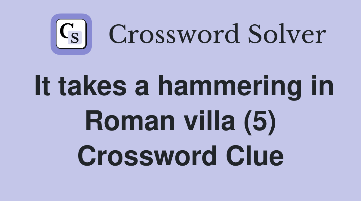 It takes a hammering in Roman villa (5) Crossword Clue Answers