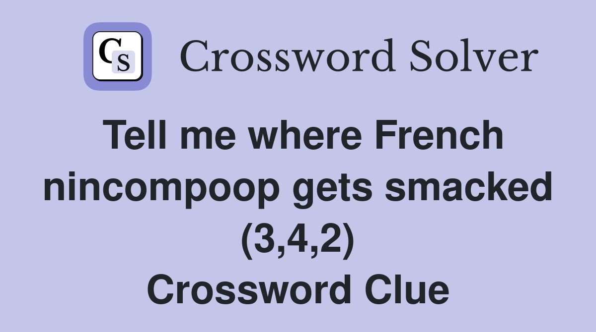 Tell me where French nincompoop gets smacked (3 4 2) Crossword Clue