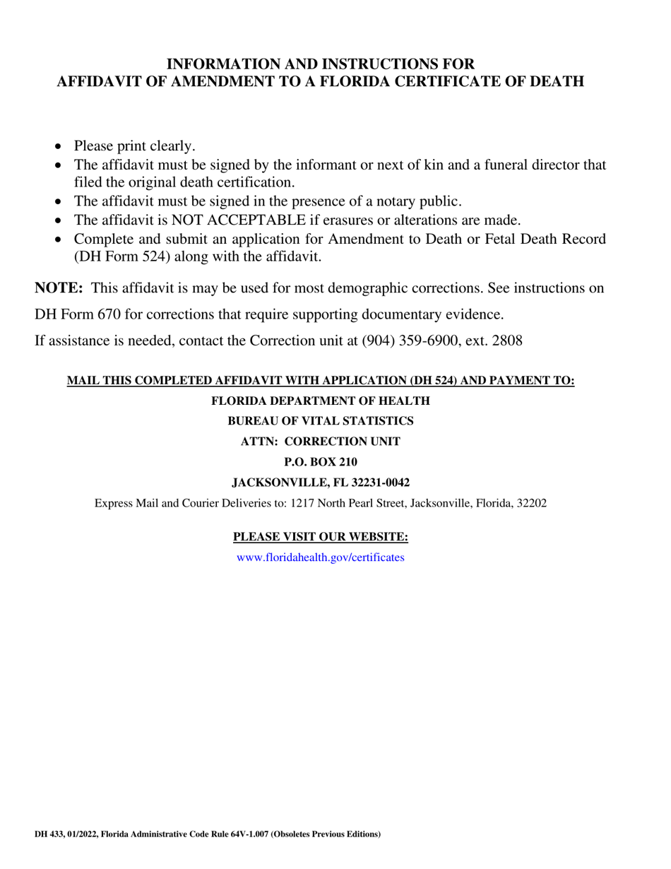 Form DH433 Fill Out Sign Online and Download Fillable PDF Florida