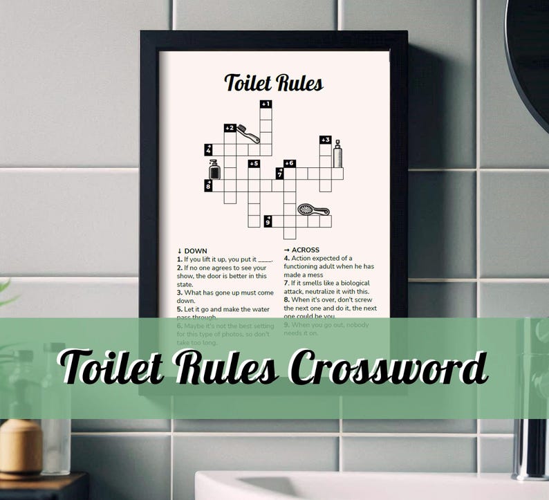Toilet Rules Crossword Printable in 4 Sizes A Funny Toilet Game to