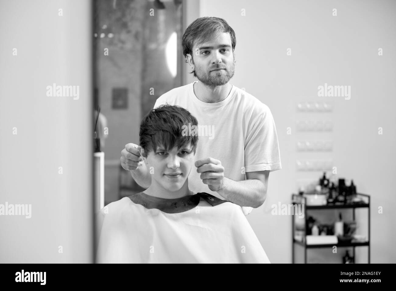 Smiling young man getting Black and White Stock Photos Images Alamy