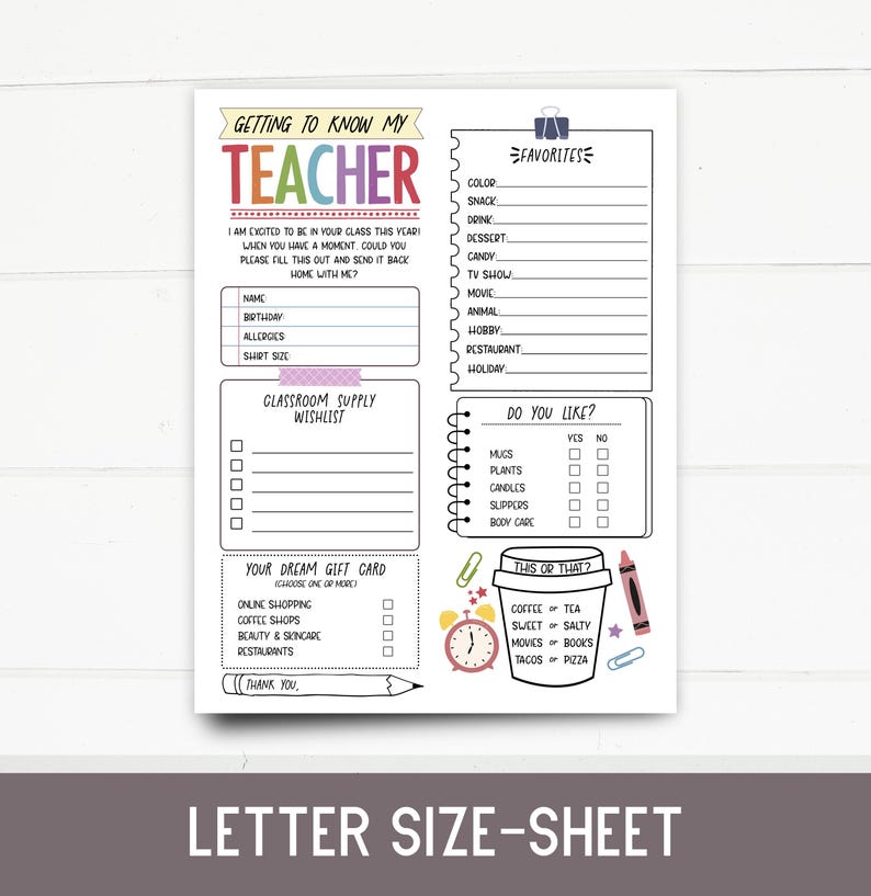 Teacher Questionnaire: Best Way to Get to Know The Teacher Printable
