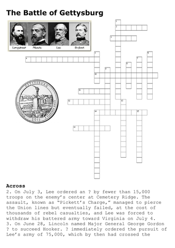 The Battle Of Gettysburg crossword puzzle Crossword Labs