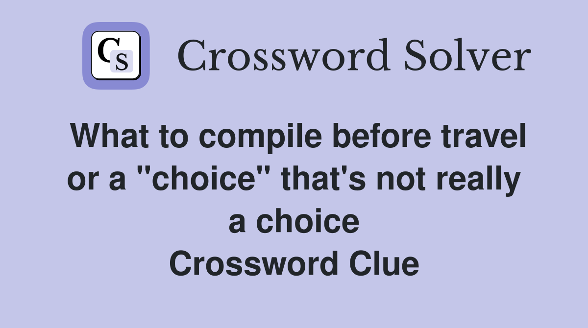 What to compile before travel or a quot choice quot that #39 s not really a choice