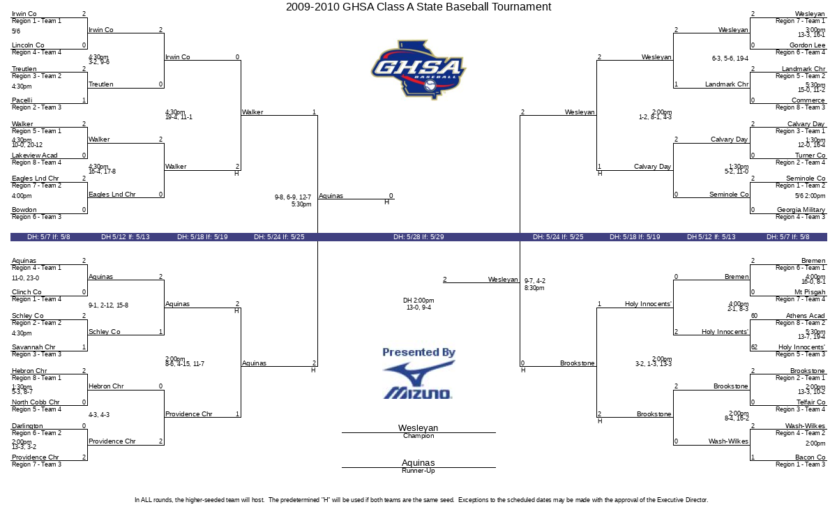 2009 2010 GHSA Class A State Baseball Tournament GHSA net