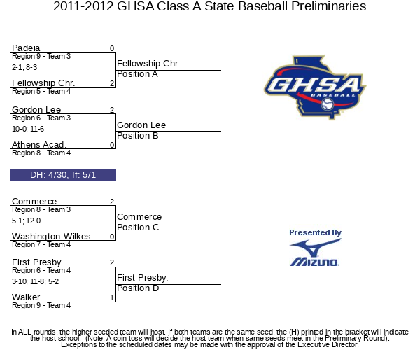 2011 2012 GHSA Class A State Baseball Preliminaries GHSA net
