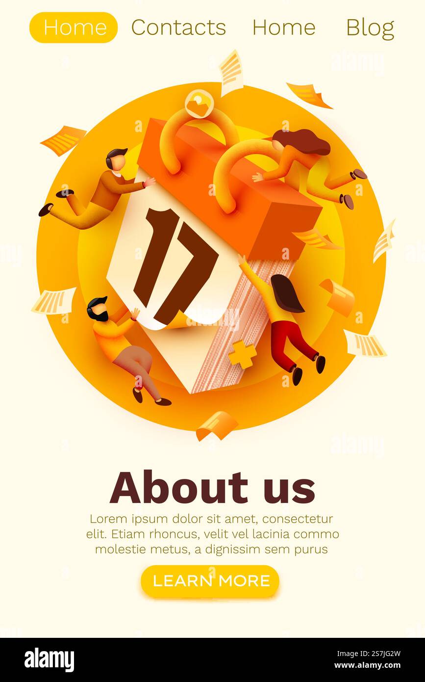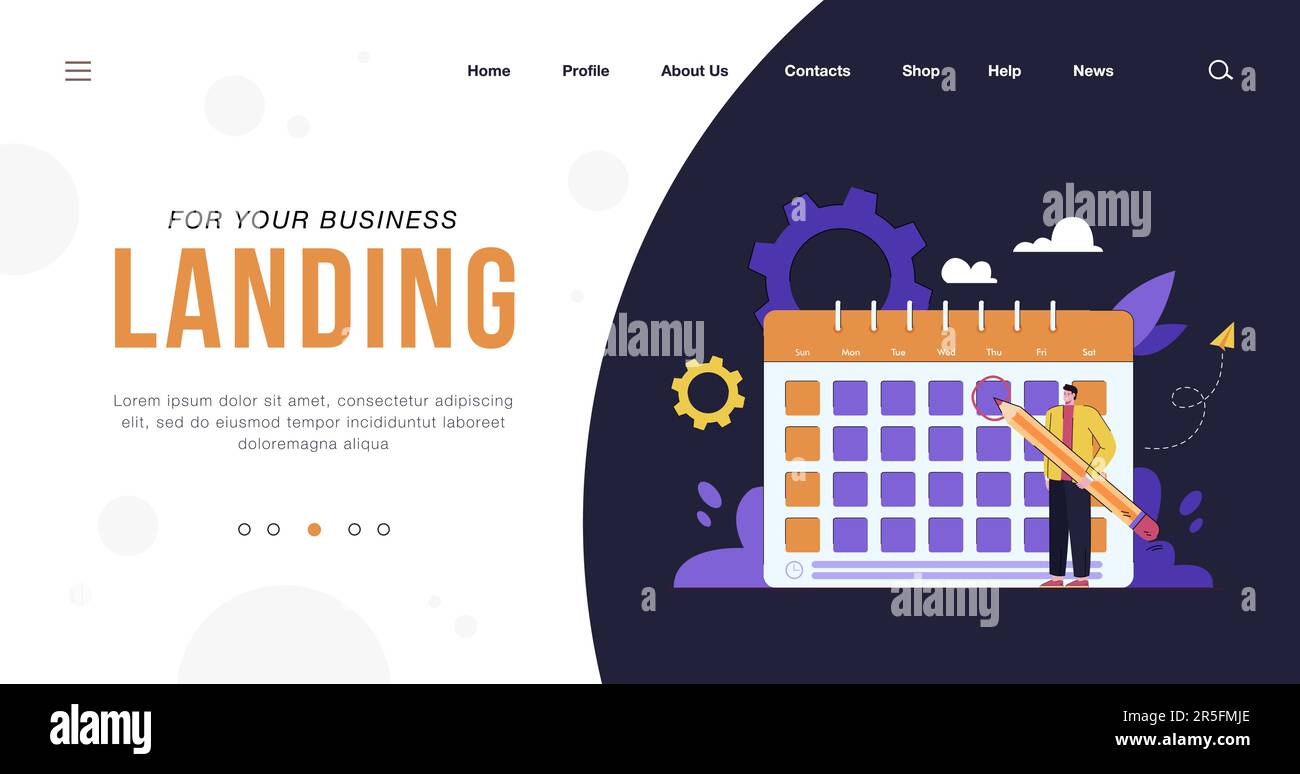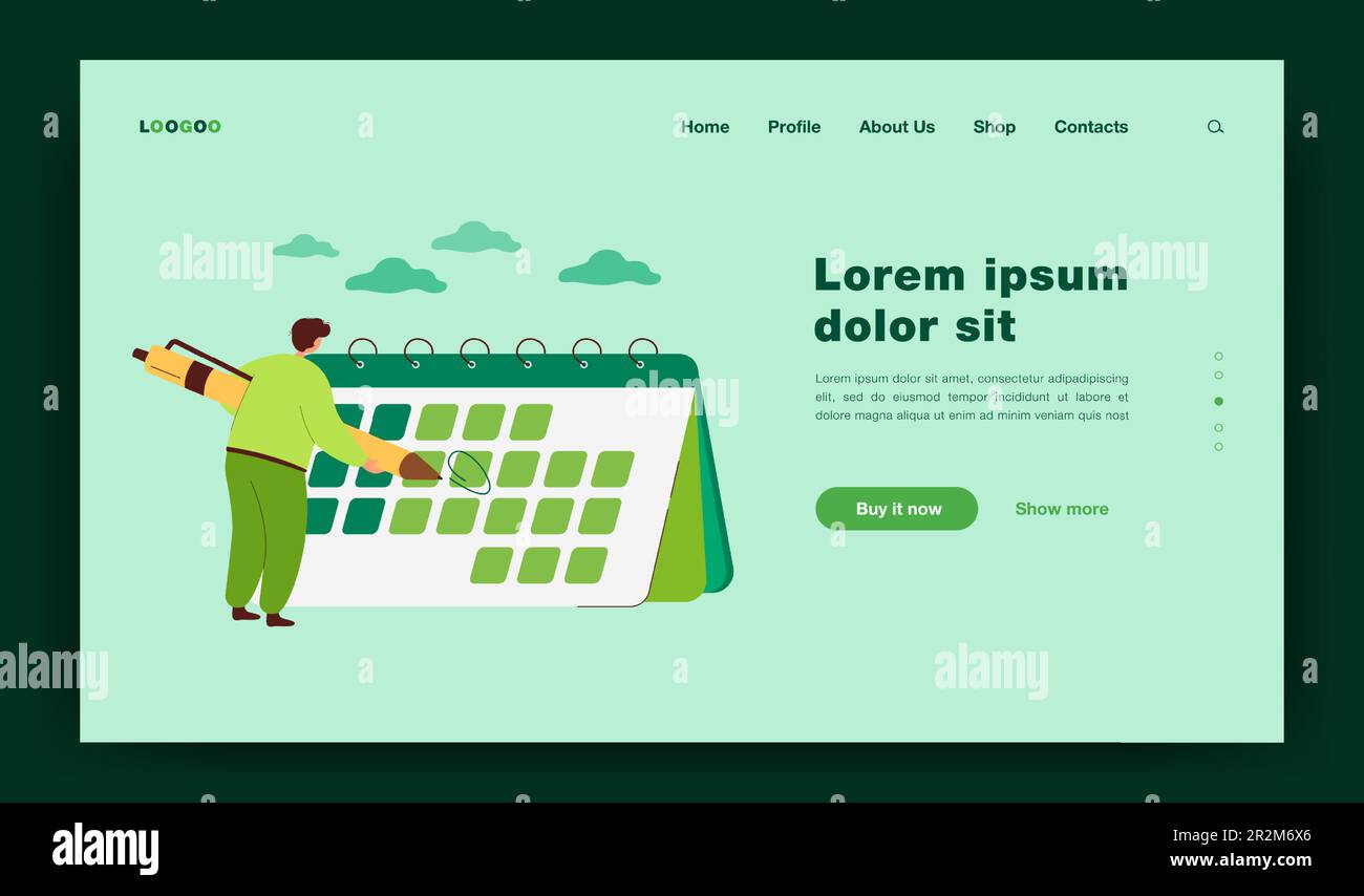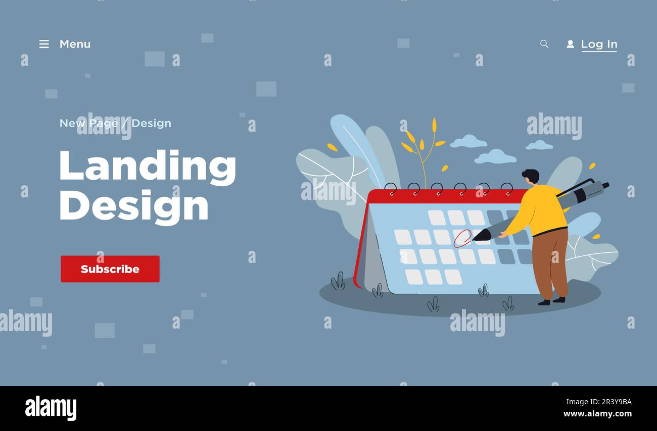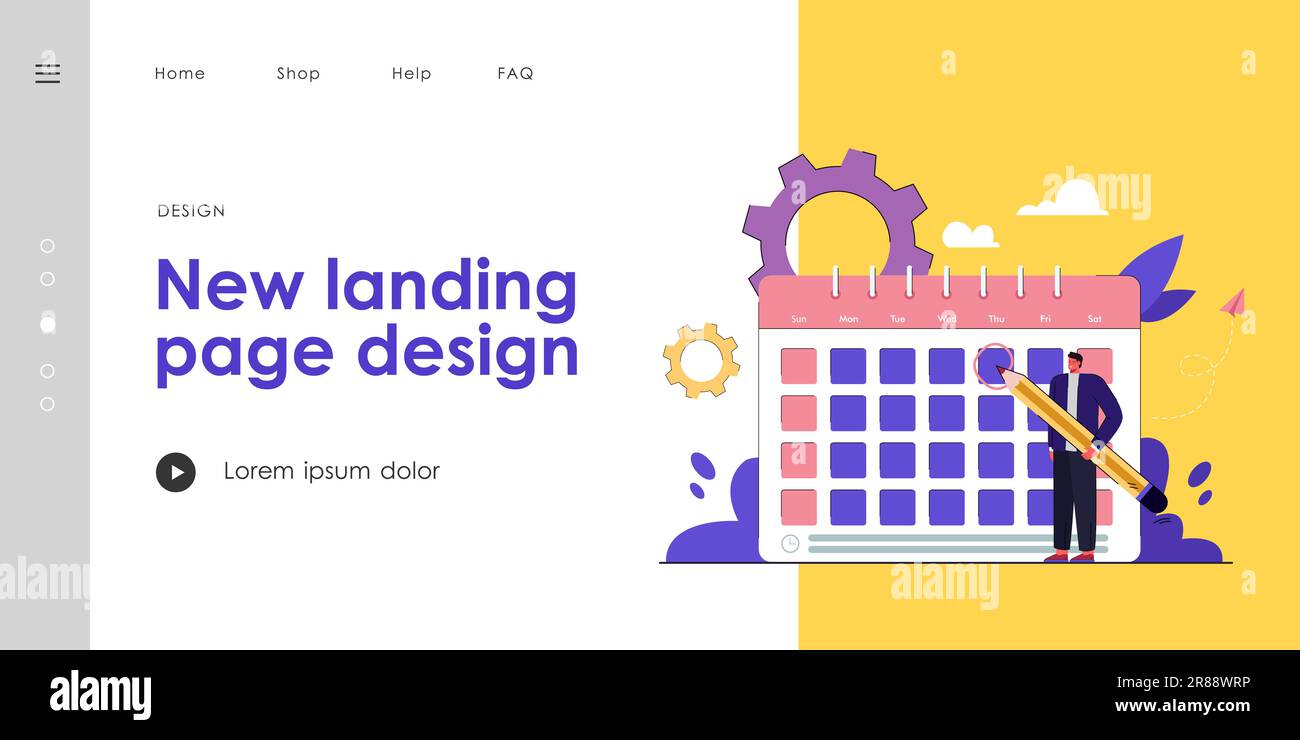 Tiny man in front of giant calendar cartoon vector illustration Stock