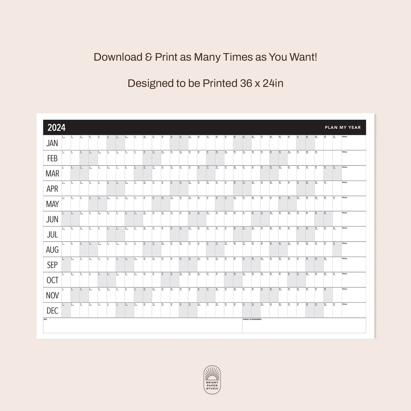 Large 2024 Wall Calendar Printable 2024 Wall Planner Annual Planner
