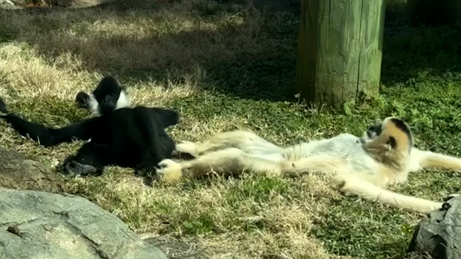 Gibbons doze in the sun at Memphis Zoo in Tennessee