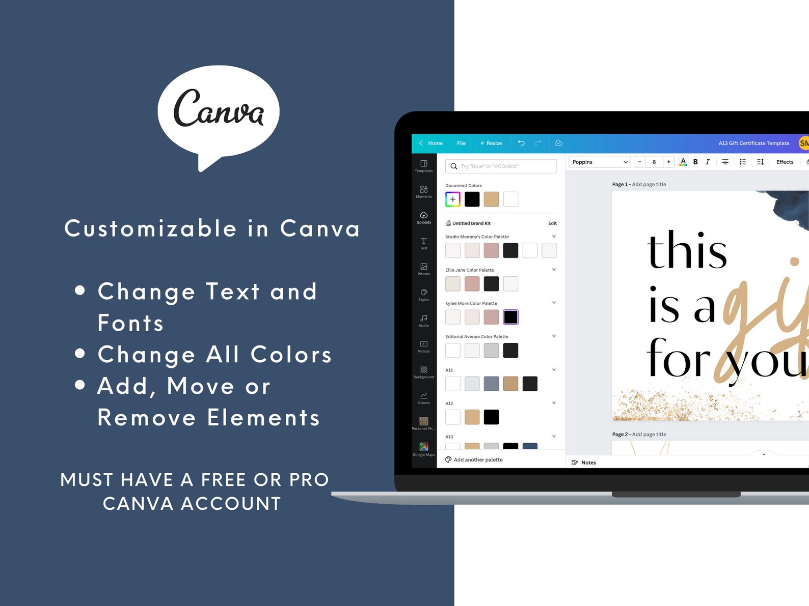 Gift Card Template Printable and Editable Gift Certificate for Women