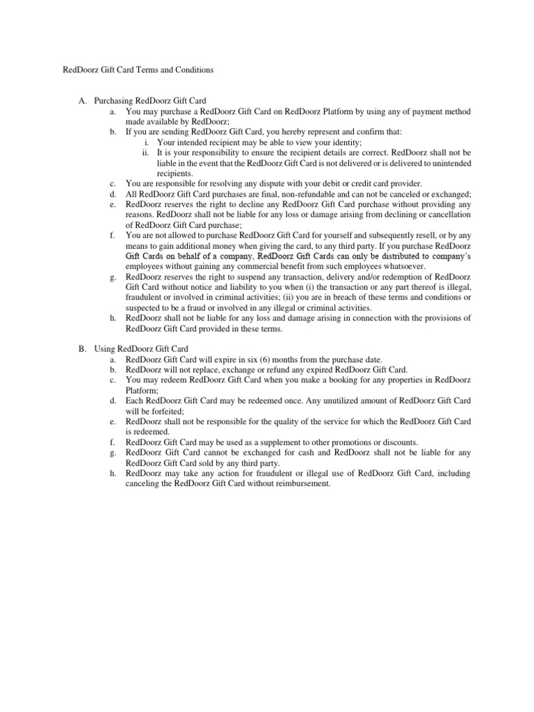 Gift Card Terms Conditions PDF