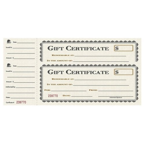Gift Certificate with Stub Book 7 81 x 3 25 Cream 25 Certificates